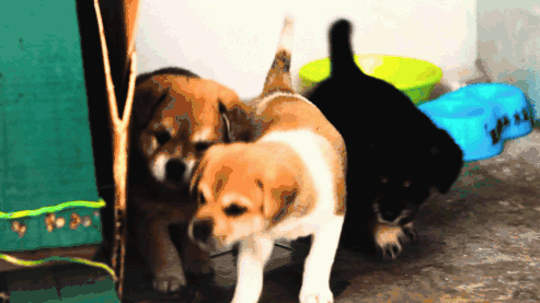 9月初,一个周一的早晨。10点左右,Lolo他们如常上班。大白来工作室等到了他们,用尽一切方式让人们体会到它的迫切,大家霎时间明白——大白生产了。人们跟着大白顺利找到了狗崽,Lolo和Jojo都是照顾小动物的老手了,为它们护理好后就带回了工作室。根据三小只各自的颜色,为它们取名:煤炭、肥牛、毛肚,名字怪有趣,凑起来恰好是一桌火锅。